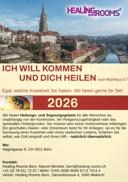Sollten Ihnen diese Termine nicht gehen, dann scheuen Sie sich nicht, uns anzuschreiben. Wir bieten gerne auch individuelles Heilungs- und Befreiungsgebet nach persönlicher Terminabsprache an.